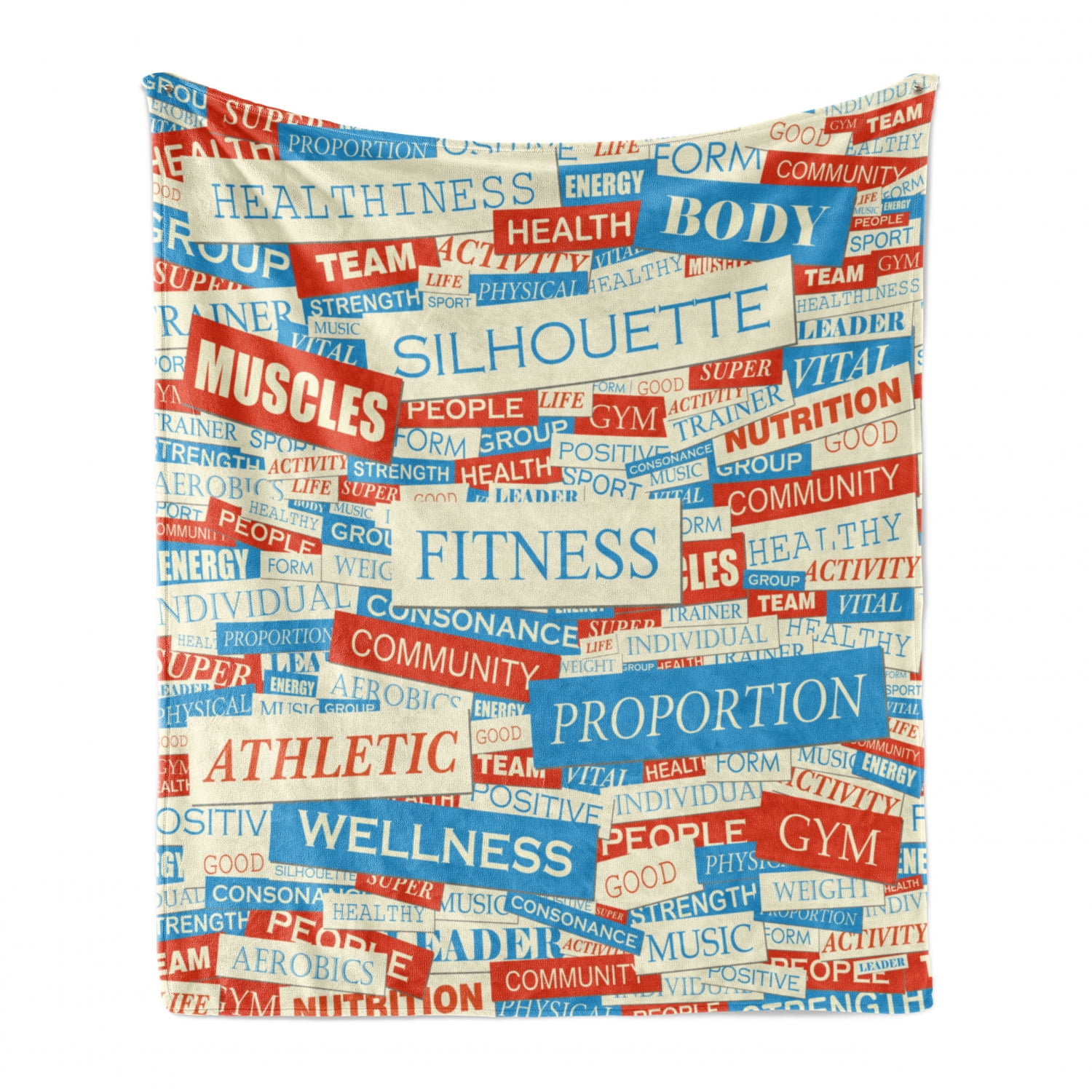 Fitness Soft Flannel Fleece Throw Blanket Collage Of Words Physical Activity Healthiness Nutrition Bodycare Theme Cozy Plush For Indoor And Outdoor Use 70 X 90 Sky Blue White Red By Ambesonne